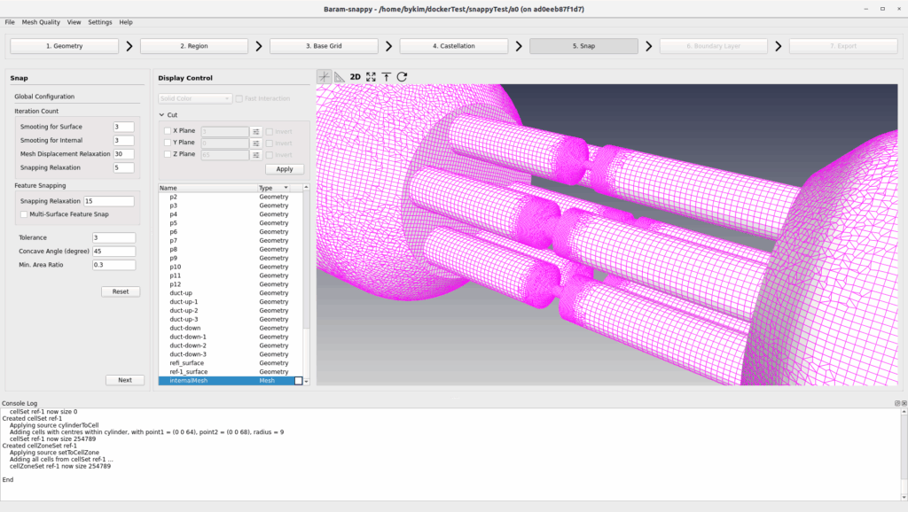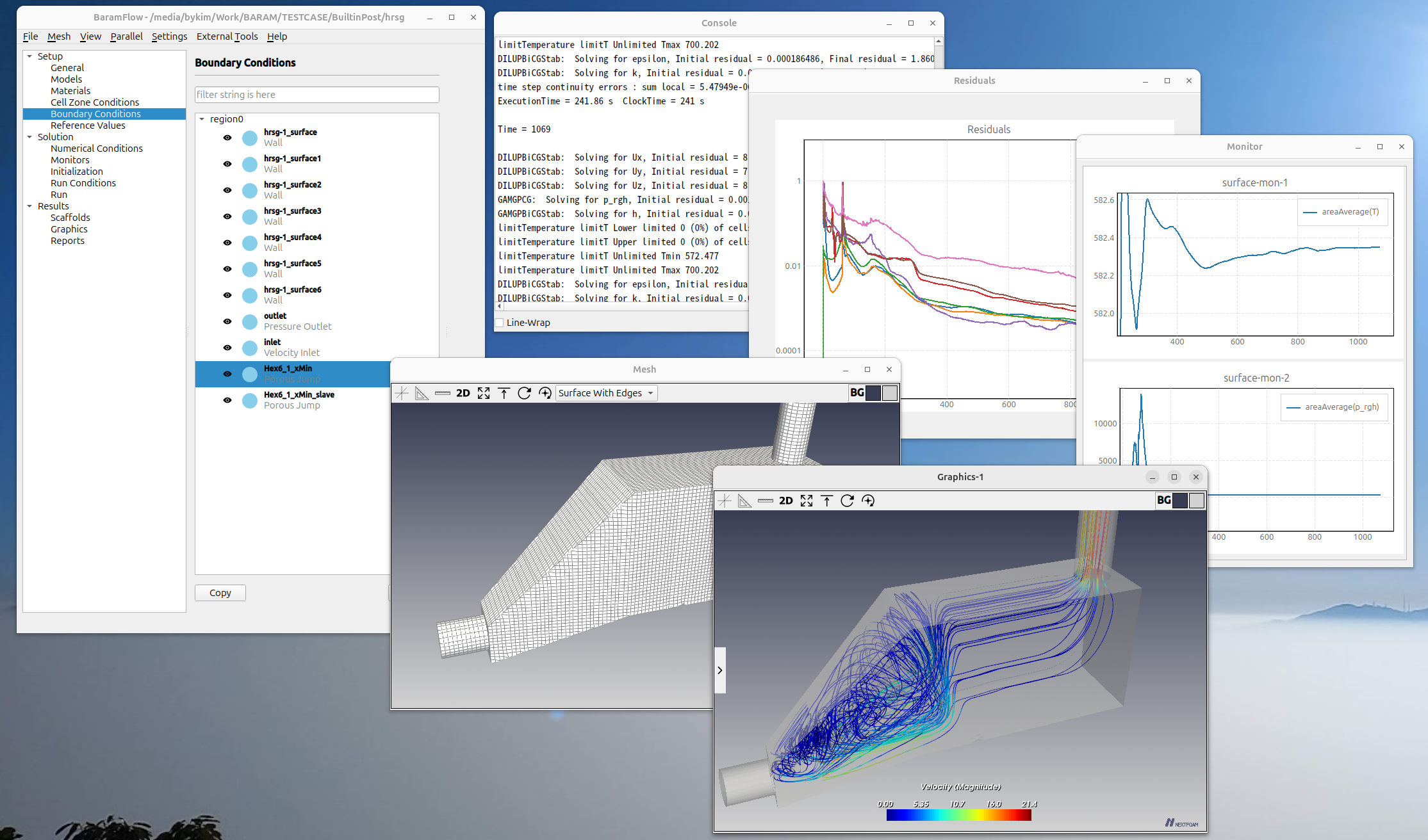 BARAM® is released under the GNU GPL v3 license and consists of baramMesh, a mesh generation module, and baramFlow, an analysis module. OpenFOAM® used by BARAM® is a fork of NextFOAM developed by NEXTFOAM Co., Ltd.