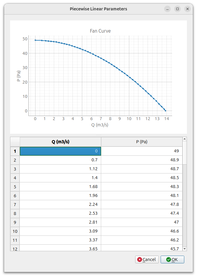 The fan performance curve is a CSV file; the first column is flow rate, the second column is pressure.