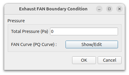 유동의 출구에 팬 조건을 사용한다. 전압력(total pressure)와 팬 성능곡선을 입력한다.